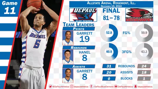ROSEMONT, Ill. - Clutch free throws by Billy Garrett Jr. and Tre'Darius McCallum led DePaul to an 81-78 victory over Southeast Missouri State Monday night at Allstate Arena.