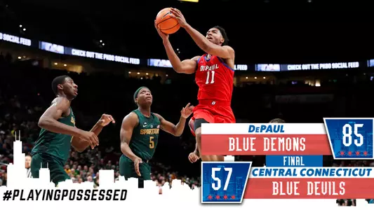 CHICAGO - A stalwart defensive effort led DePaul to an 85-57 win over visiting Central Connecticut State on Wednesday night as the Blue Demons held the Blue Devils to 57 points, tying their lowest point total allowed on the season.