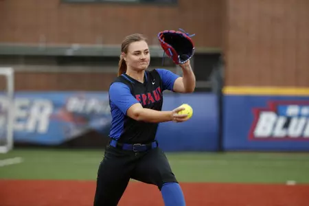 Kayla Landwehrmier (1-1) earned her first win in the circle for the Blue Demons after pitching four innings and allowing one earned run. Kennedy Garcia recorded a save after pitching for an inning with no hits and a strikeout.
