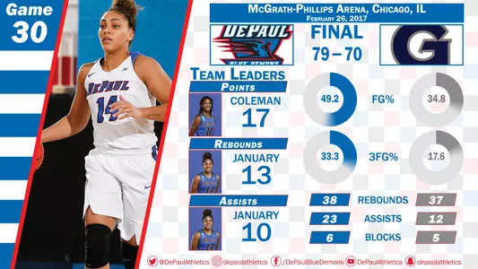 CHICAGO - On Senior Day Sunday Jessica January did her best Russell Westbrook impersonation, posting her second career triple-double with 16 points, 13 rebounds and 10 assists to lead DePaul to a 79-70 win over Georgetown.
