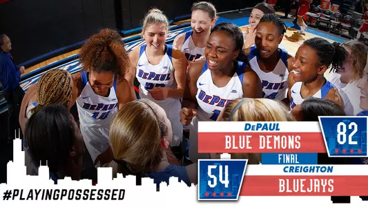 The Blue Demons made 10 of their first 13 from three-point range and went on to post an 82-54 BIG EAST victory over Creighton Wednesday night at Sokol Arena.