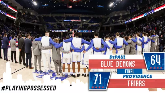 CHICAGO - On a night that featured an all-access, commercial-free broadcast on FS1, visiting Providence outlasted DePaul, 71-64, at Wintrust Arena. Marin Maric led the Blue Demons with 15 points and seven rebounds.