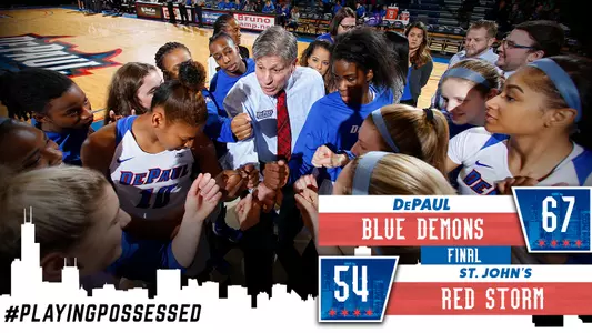 DePaul is within range of clinching its fifth consecutive regular-season title after a 67-54 victory over St. John's Friday night at Carnesecca Arena.