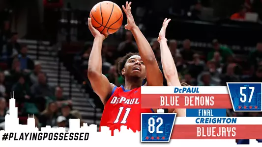 OMAHA, Neb. - Creighton opened up a 10-point halftime lead with an early second half run as the Bluejays defeated the Blue Demons, 82-57, on Tuesday night. Max Strus led DePaul with 14 points whiel Paul Reed and Eli Cain scored 11 points each.