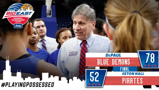 After the Blue Demons' 78-52 victory over Seton Hall Sunday at Wintrust Arena, they are two wins away from their third BIG EAST Tournament title in the last five years.
